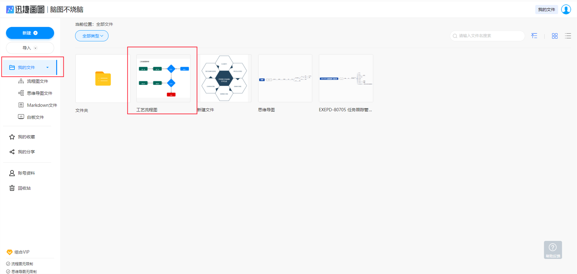 Öffnen Sie die Quick Draw Web-Version, gehen Sie in das Personal-Center und öffnen Sie die Flussdiagrammdatei in Meine Dateien.