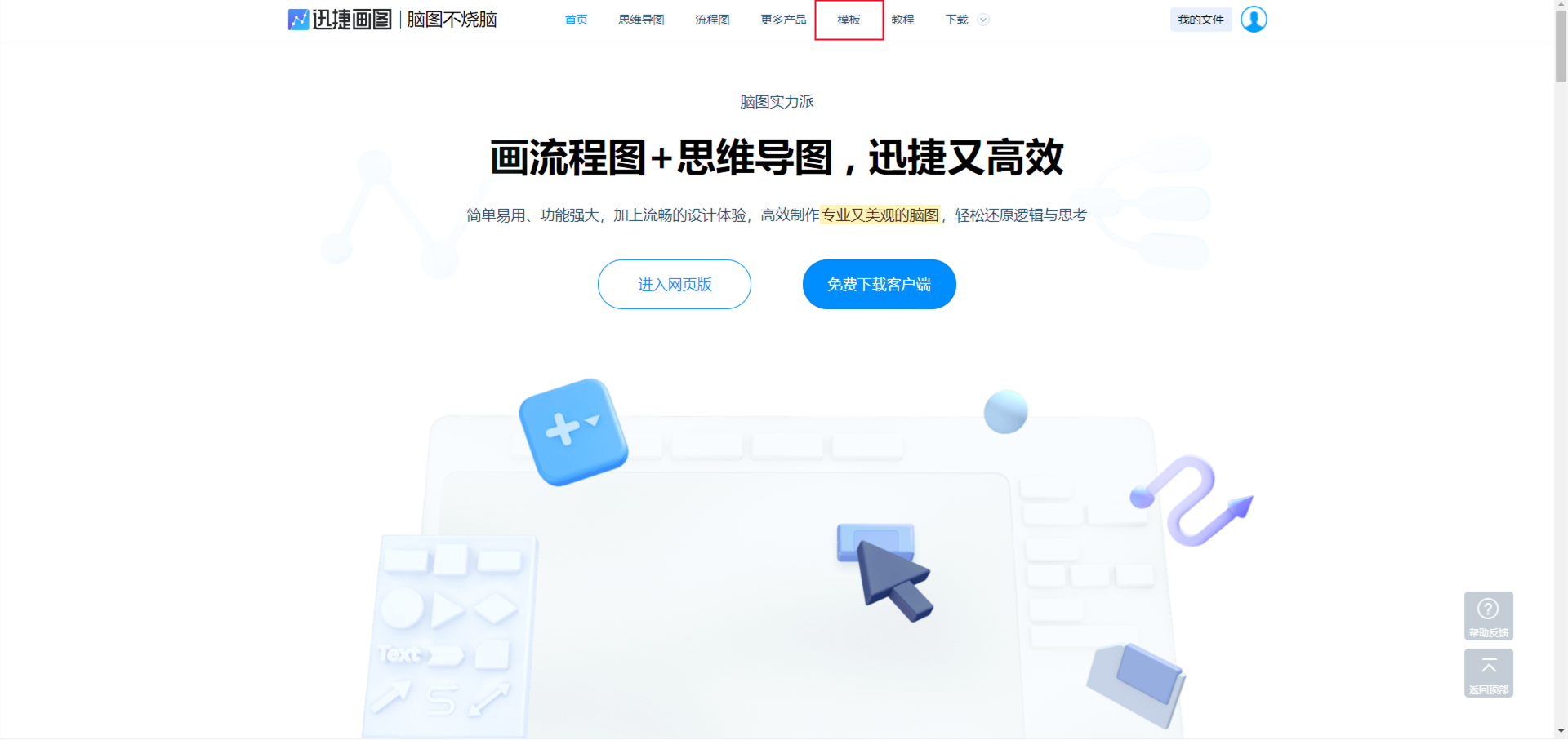 打开迅捷画图官网,在网页上方点击【模板】。